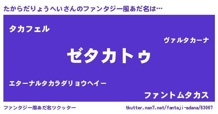 | 意味不明あだ名 | 『自称たからだりょうへい』 |