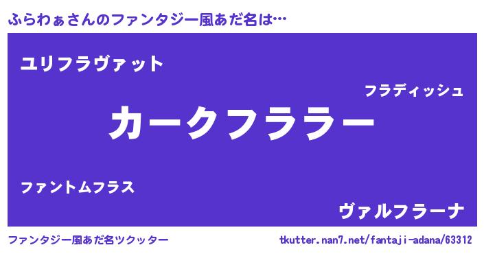 | 男性向けラノベタイトル風あだ名 | 『緋弾のフラワァ』『魔弾の王とふらわぁ』 |