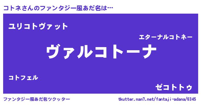 | 男性向けラノベタイトル風あだ名 | 『この素晴らしい世界にコトネを!』 |