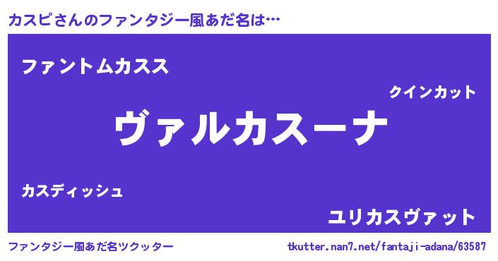 | 男性向けラノベタイトル風あだ名 | 『この素晴らしい世界にカスピを!』 |