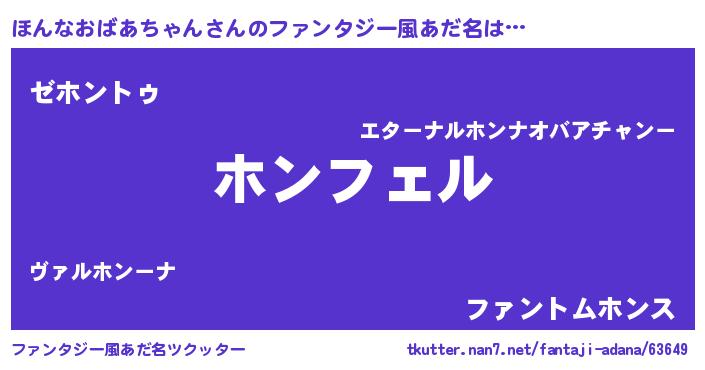 | 欧米人風あだ名 | 『アンジェラ・ほんなおばあちゃん』 |