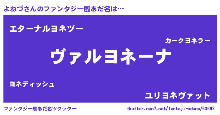 | 男性向けラノベタイトル風あだ名 | 『この素晴らしい世界によねづを!』 |