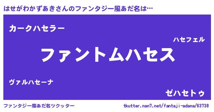 | 女子向けラノベタイトル風あだ名 | 『はせがわかずあきの卵を拾いまして』 |