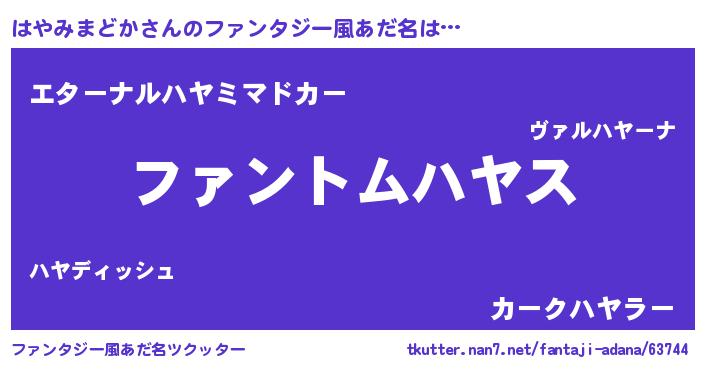 | ポケモン風あだ名 | 『ヒハヤミマドカ』『ハヤミダネ』 |