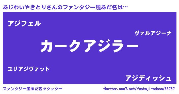 | ヒーロー風カッコイイあだ名 | 『スーパーアジワイヤキトリ』 |