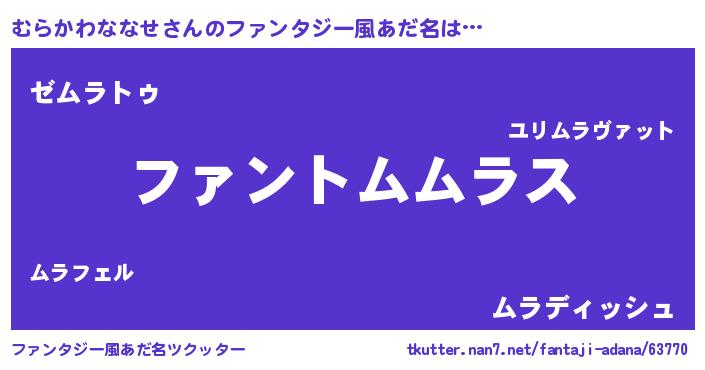 | 意味不明あだ名 | 『とにかく怪しいむらかわななせ』 |