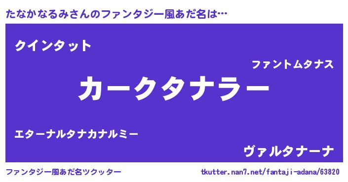 | 男性向けラノベタイトル風あだ名 | 『うちのたなかなるみが世界を掌握している!』 |