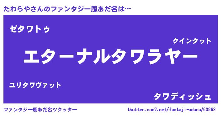 | ポケモン風あだ名 | 『タワゴンZ』『タワラダネ』 |
