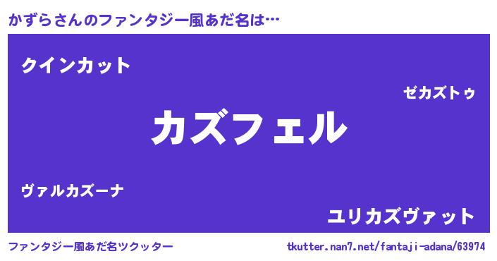 | 男性向けラノベタイトル風あだ名 | 『かずらに滅ぼされるだけの簡単なお仕事です』 |