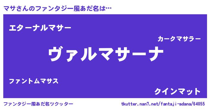 男性向けラノベタイトル風あだ名 | 『魔弾の王とマサ』『はたらくマサさま!』 |