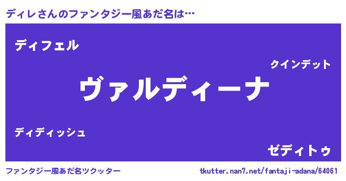 | 男性向けラノベタイトル風あだ名 | 『この素晴らしい世界にディレを!』 |