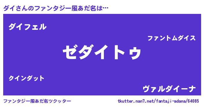 | 女子向けラノベタイトル風あだ名 | 『ダイなんてお断りですっ。』 |