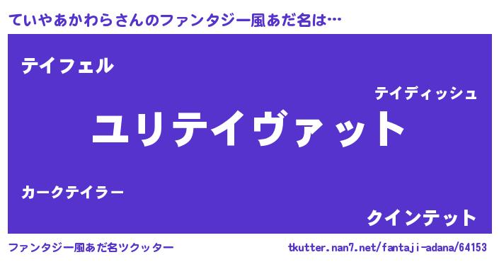 | 男性向けラノベタイトル風あだ名 | 『テイヤアカワラスレイヤー』 |