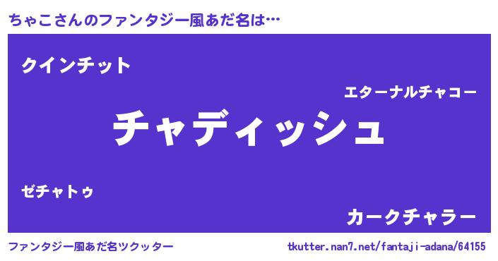 | 伝説のあだ名 | 『古文書に記された勇者ちゃこ』 |