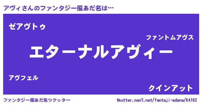| 意味不明あだ名 | 『アヴィフォーエバー』『自称アヴィ』 |