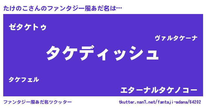 | 女子向けラノベタイトル風あだ名 | 『異世界で失敗しない100のたけのこ』 |