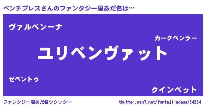 | 男性向けラノベタイトル風あだ名 | 『ベンチプレススレイヤー』 |