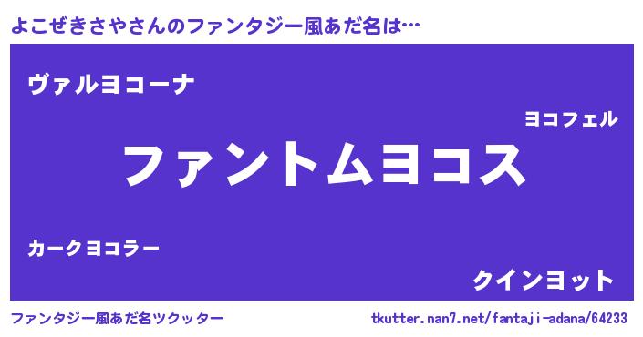 | 女子向けラノベタイトル風あだ名 | 『よこぜきさやは平凡を望む』 |