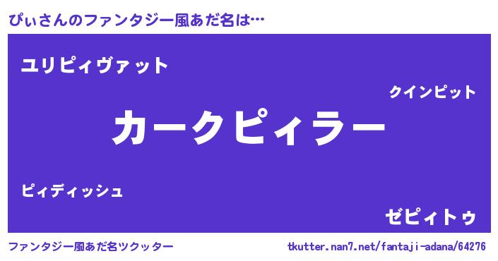 | 男性向けラノベタイトル風あだ名 | 『はたらくぴぃさま!』『緋弾のピィ』 |