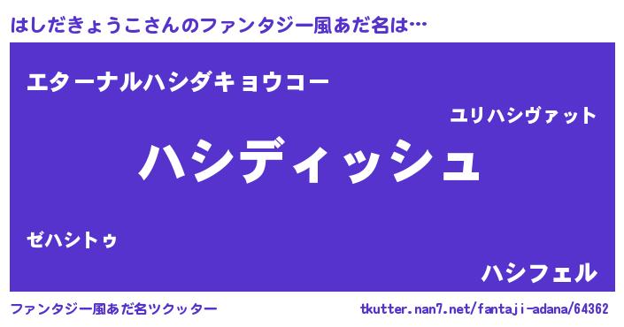 | 意味不明あだ名 | 『永久保存はしだきょうこ』 |
