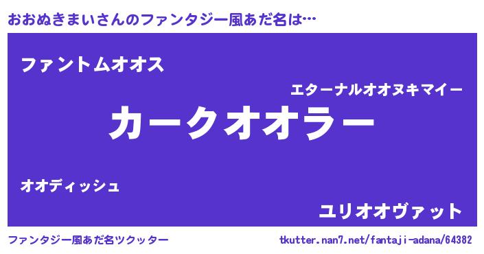 | ヒーロー風カッコイイあだ名 | 『幻影騎士オオ』『ネオオオヌキマイ』 |