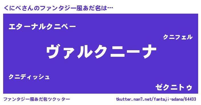 | 男性向けラノベタイトル風あだ名 | 『この素晴らしい世界にくにべを!』 |