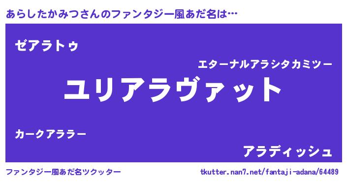 | 伝説のあだ名 | 『古より伝わる吟遊詩人あらしたかみつ』 |