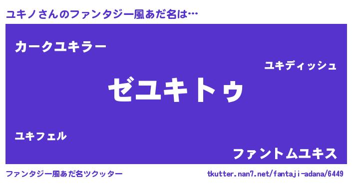| 男性向けラノベタイトル風あだ名 | 『Re:ユキノから始める異世界生活』 |