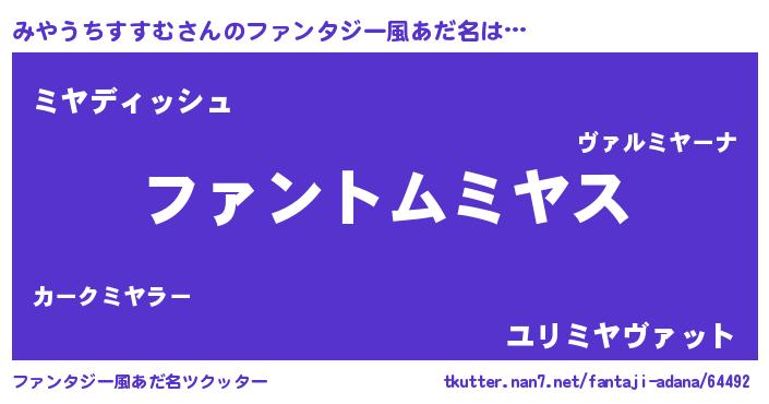 | ポケモン風あだ名 | 『ミヤゴンZ』『ヒミヤウチススム』 |