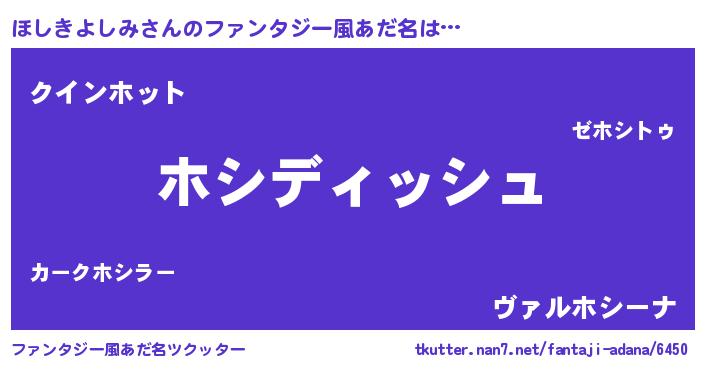 | ヘコむあだ名 | 『ほしきよしみ(笑)』『ほし太郎』 |