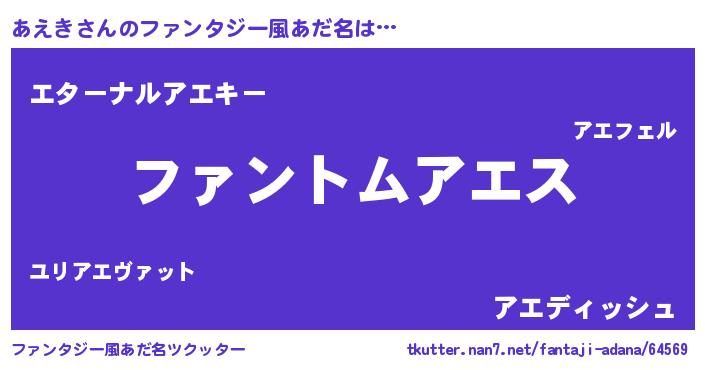 | ヒーロー風カッコイイあだ名 | 『幻影騎士アエ』『ウルトラあえきマン』 |