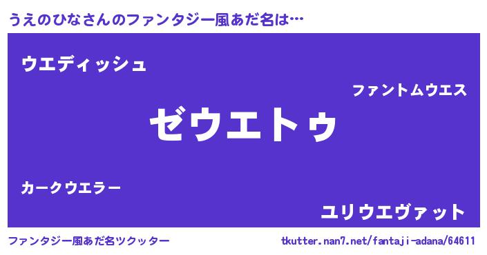 | ポケモン風あだ名 | 『ウエセウス』『ゼニウエ』 |