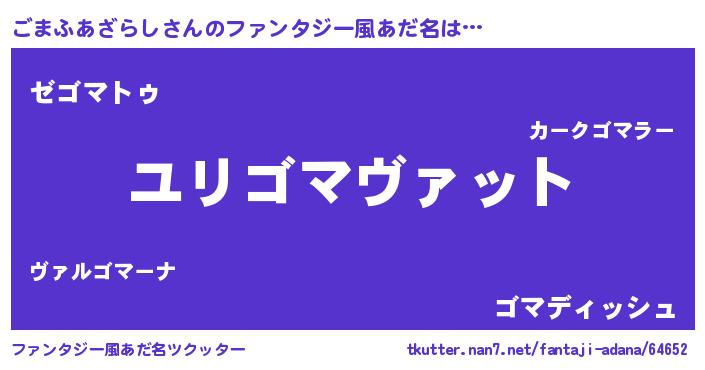 | 男性向けラノベタイトル風あだ名 | 『ごまふあざらし~年齢イコール彼女いない歴の魔法使い~』 |