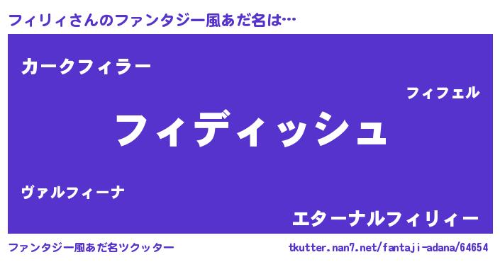 | 女子向けラノベタイトル風あだ名 | 『異世界で失敗しない100のフィリィ』 |