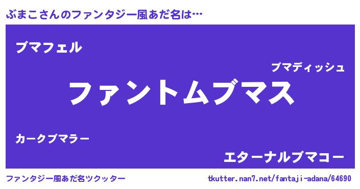 | 男性向けラノベタイトル風あだ名 | 『ぶまこの嫁は女の子じゃないと思った?』 |