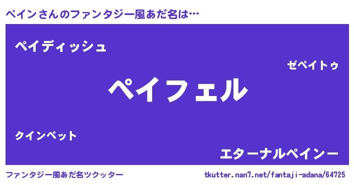 | 女子向けラノベタイトル風あだ名 | 『ペイン姫と円卓の騎士』『ペイン恋絵巻』 |