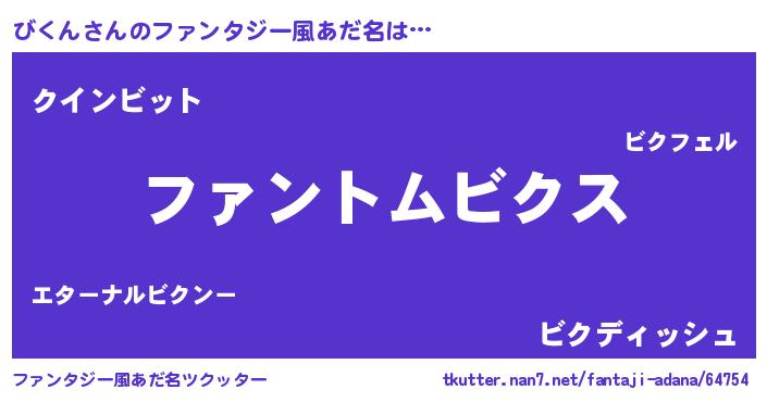 | 男性向けラノベタイトル風あだ名 | 『びくんの嫁は女の子じゃないと思った?』 |