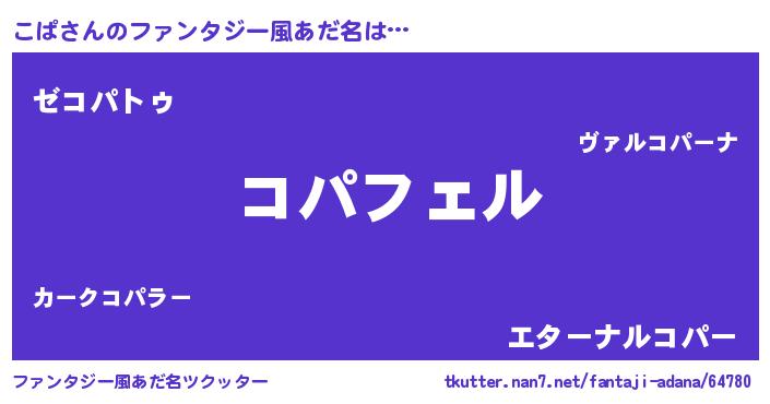 | 男性向けラノベタイトル風あだ名 | 『コパアートオンライン』『緋弾のコパ』 |