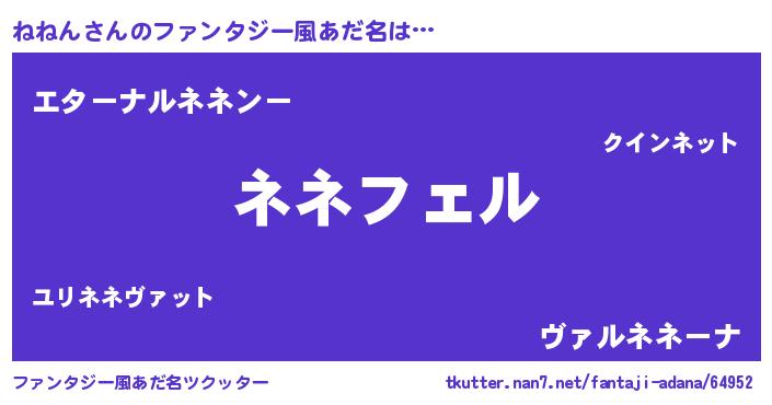 | ポケモン風あだ名 | 『ネネチュウ』『ネネンダネ』 |