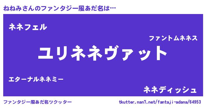 | 肩書あだ名 | 『ねねみ上級大将』『ねねみ御曹司』 |