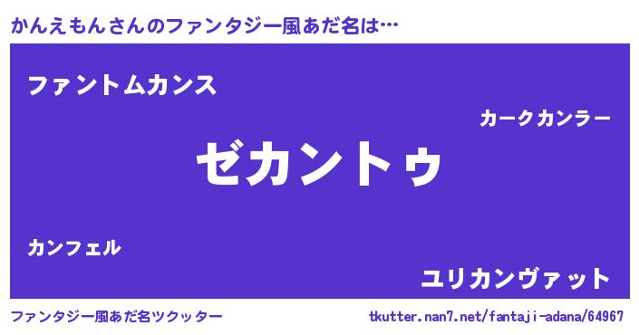 | 男性向けラノベタイトル風あだ名 | 『Re:かんえもんから始める異世界生活』 |
