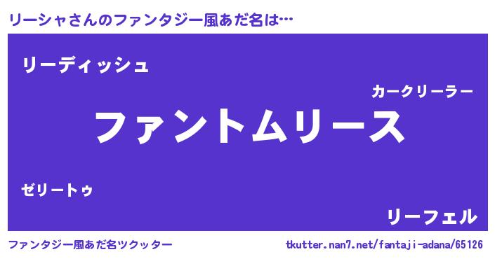 | 男性向けラノベタイトル風あだ名 | 『リーシャに滅ぼされるだけの簡単なお仕事です』 |