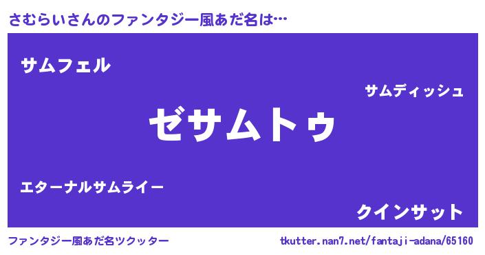 | 男性向けラノベタイトル風あだ名 | 『Re:さむらいから始める異世界生活』 |