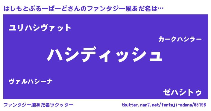 | 欧米人風あだ名 | 『アンジェラ・はしもとぶるーばーど』 |