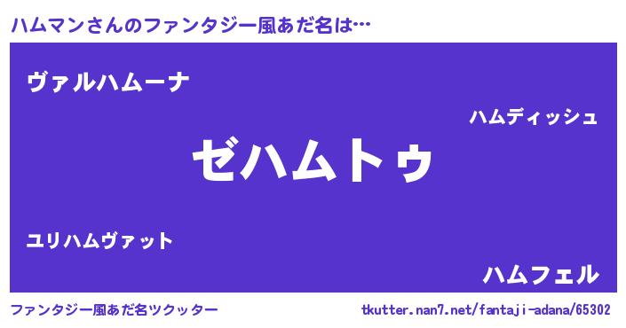 | 女子向けラノベタイトル風あだ名 | 『ハムマンアンティーク』 |