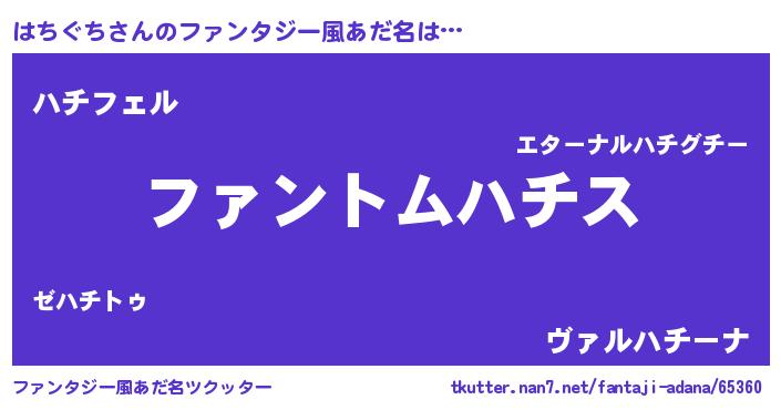 | 男性向けラノベタイトル風あだ名 | 『はちぐちの嫁は女の子じゃないと思った?』 |