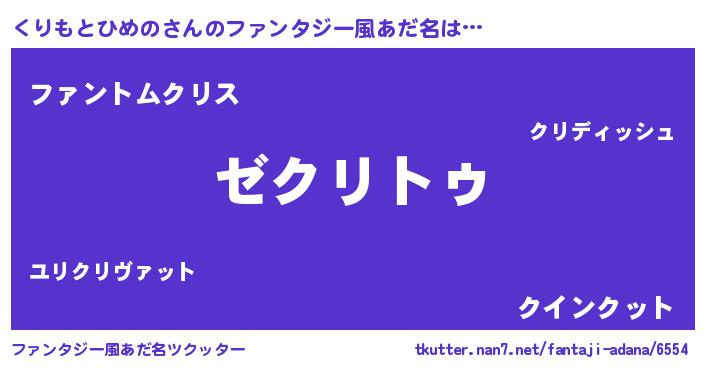 | 男性向けラノベタイトル風あだ名 | 『Re:くりもとひめのから始める異世界生活』 |