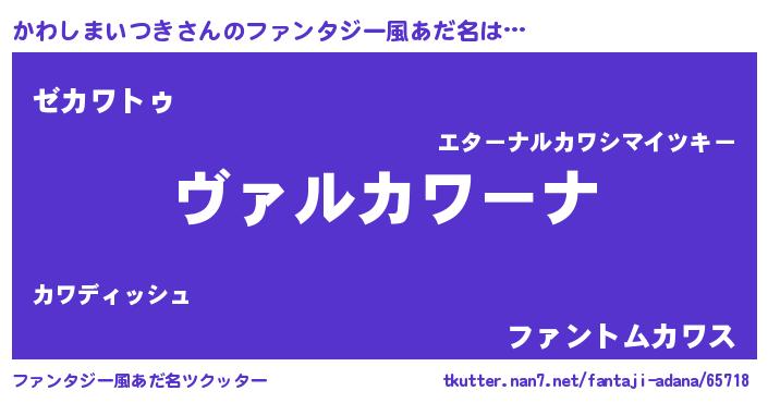 | 男性向けラノベタイトル風あだ名 | 『この素晴らしい世界にかわしまいつきを!』 |