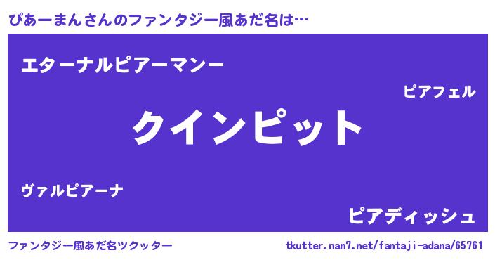 ぴあーまんさんのファンタジー風あだ名をツクッター!