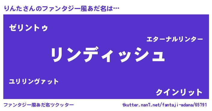| 女子向けラノベタイトル風あだ名 | 『りんたの契約王妃』『りんた恋絵巻』 |